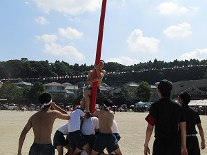高校男子の棒倒し。痛みに負けず必死です。