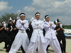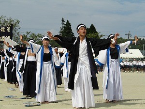 紅組応援団。迫力のある演技です。