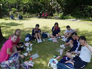 5月23日(火)にMM中学校の生徒の歓迎一日遠足が行われました。 本年度は、指宿方面に足を伸ばし、指宿の郷土資料館を訪問し歴史を学び、また 長崎鼻パーキングガーデンでは、開聞岳の景色やいろいろな動物と触れ合いました。 MM中学校の生徒とも沢山話ができ、交流が深まったと思います。