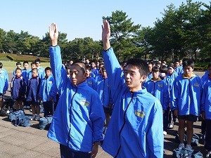 選手宣誓は高校1年 近藤来音くん(帖佐中出身) 中学1年生 瀬脇 怜(内山田小出身)