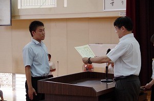 表彰式:高校2年 永仮雄樹君(吹上中出身)