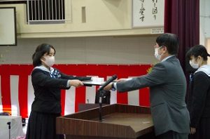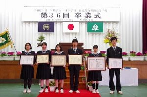 コロナ感染対策の一環として、卒業式の時間短縮のため、昨年度から卒業式表彰を前日に実施しております。 高校3年生6名が表彰されました。