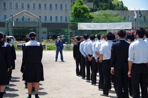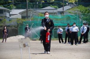 令和3年度、防災訓練が行われました。 本年度は例年と異なり、PC室からの出火を想定して行われました。